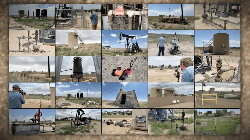 This nationwide investigation, Zombie Wells: The Threat Beneath, tested a total of 76 wells across five states and found that more than half were leaking oil or combustible gas at the time. I personally went out to more than a dozen well locations in northern Colorado to check for leaks using a handheld gas detector and a safety device that monitors ambient air quality. These devices can detect hundreds of combustible gases, including climate-warming methane. I was also accompanied by a FLIR camera operator so that we could visualize the emissions.