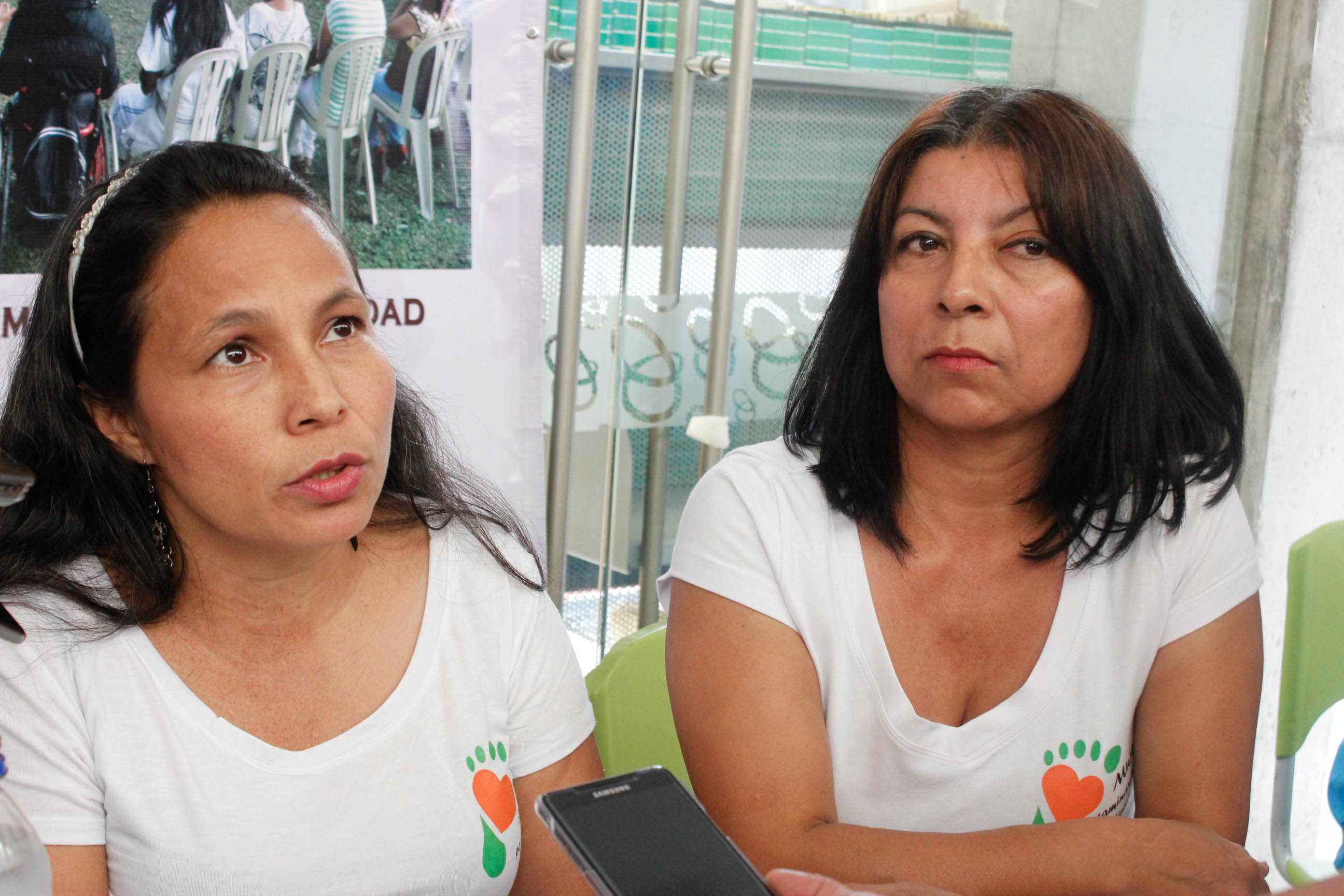 Members of the Comuna 13-based victims organization Women Walking for Truth present a statement at an October 14 press conference.