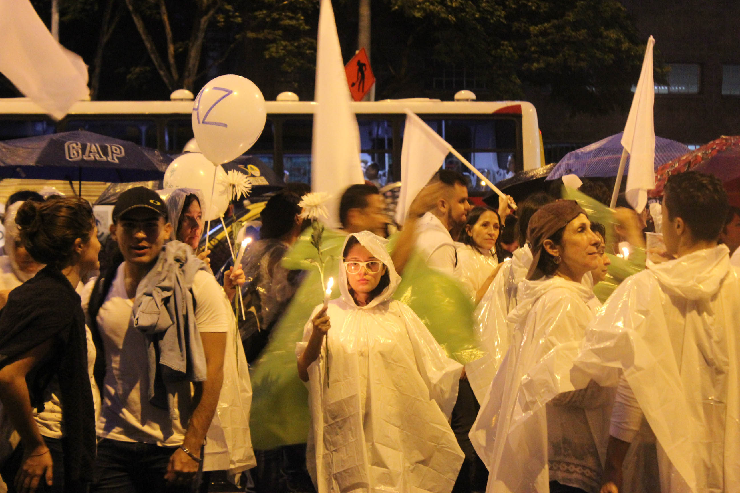 Protestors march for peace on October 7 in Medellín, Colombia’s second largest city and a stronghold of the movement against the peace deal between the Colombian government and the country’s largest rebel group.